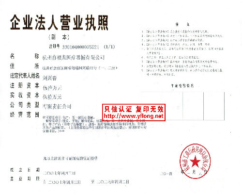 联系传真: 杭州育福龙医疗器械有限公司