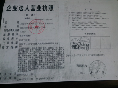 公司名称: 上海仙代(现代)生物科技有限公司 联系人: 赵飞翔  先生