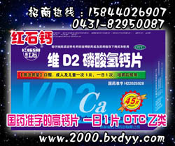 适应症:红石钙维D2磷酸氢钙片国药准字的高钙片 .